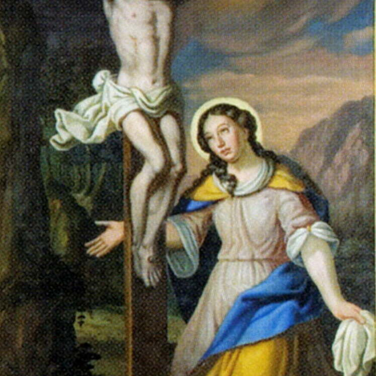 Hl. Maria Magdalena mit Kruzifix Die Büßerin ist mit Kreuz, Totenkopf, Buch und Salbgefäß dargestellt. (um 1700) mehr: Hl. Maria Magdalena mit Kruzifix
