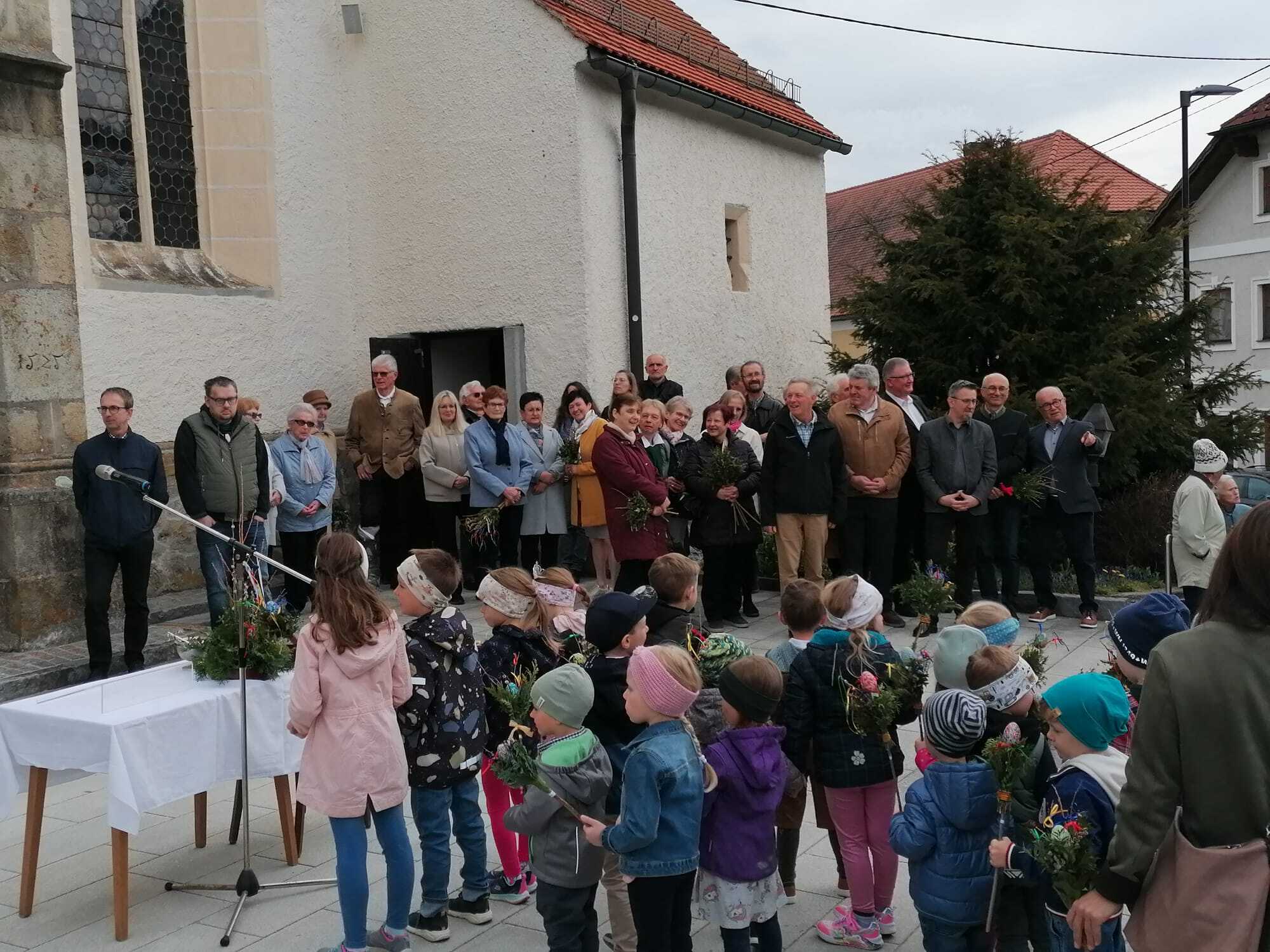 Am 13. April 2024 fand die traditionelle Palmweihe statt, die in diesem Jahr besonders festlich gestaltet wurde. Um 10:00 Uhr versammeln sich die Kinder des Kindergartens mit ihren liebevoll gebastelten Palmbuschen vor dem Pfarrheim.