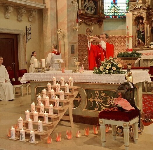 Das Fest der Erstkommunion fand heuer am Sonntag, den 25. Mai statt. 22 Kinder haben sich in den letzten Wochen im Religionsunterricht und in den Vorbereitungsstunden mit den Tischeltern auf diesen Tag vorbereitet. Die Kinder durften dann das erste Mal die hl. Kommunion von Pfarrprovisor Dr. Karol Bujnowski empfangen.