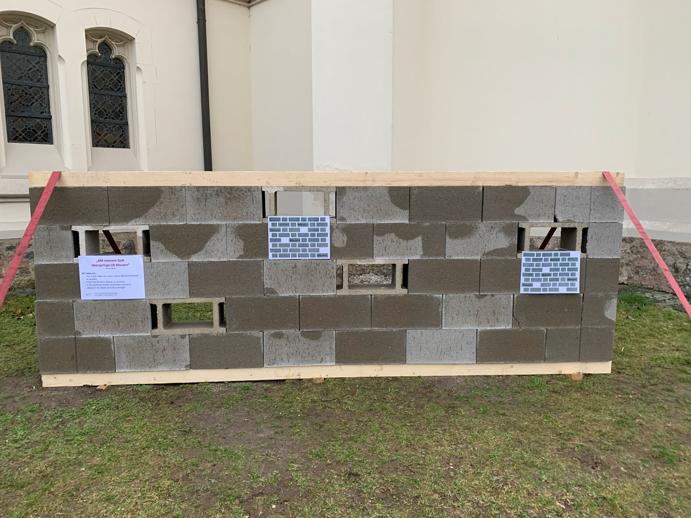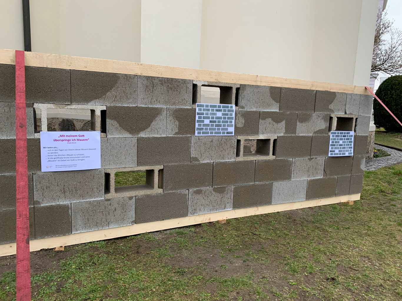 Wir laden ein, sich in den verbleibenden Tagen vor Ostern dieser Mauern bewusst zu werden; hinter die (Kirchen-)Mauer zu schauen, in die geöffnete Kirche einzutreten und seine „Mauern“ im Gebet vor Gott zu bringen.